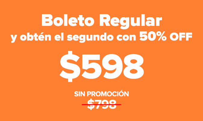 Esta promoción incluye 2 accesos con beneficio de Boleto Regular cada uno.